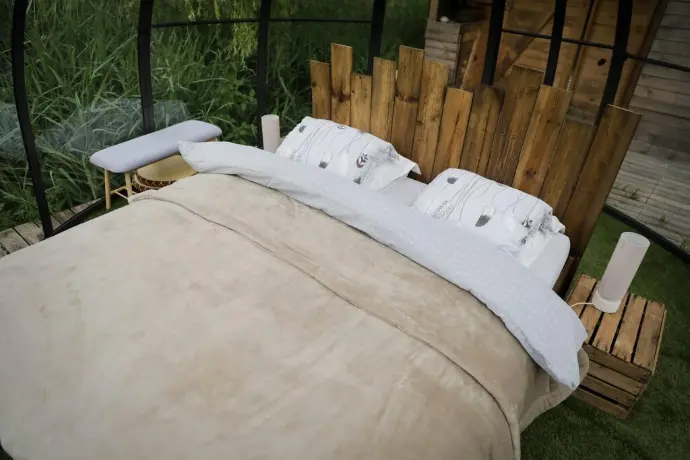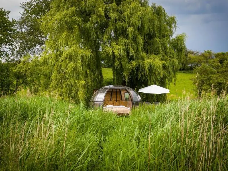 Tranquillement installés dans une cuvette du Condroz, Les Nids des Marais vous offrent une expérience nature hors du commun qui vous fera vivre un retour à l’essentiel. Vous aimez regarder les étoiles, profitez d'un moment à deux ? Vous êtes au bon endroit ! Deux sphères se sont déposées parmi les roseaux au beau milieu d’un ancien étang utilisé pour alimenter la roue du moulin. Cette même roue alimente maintenant les sphères en électricité. Lorsque les rayons du soleil laissent place aux douces lueurs nocturnes, vous êtes invités à profiter des étoiles confortablement installés dans une merveilleuse literie. Au petit matin, un copieux petit déjeuner vous attendra au pas de votre porte.