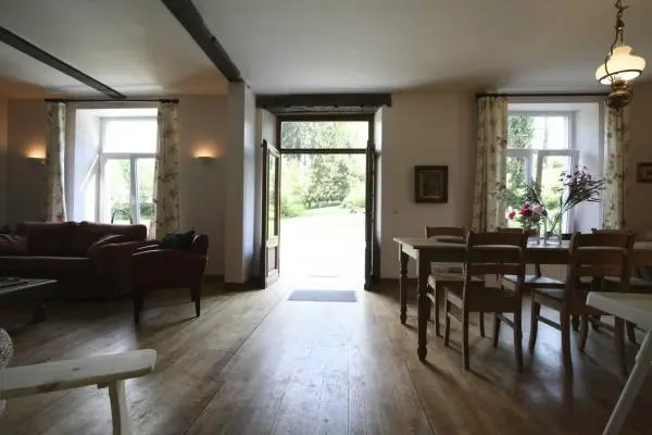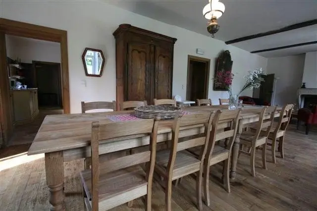 Le Manoir de Houte comprend un gîte qui peut accueillir 14 personnes pour les vacances, une réunion de famille ou un séjour de réflexion professionnelle. Situé dans le haut de la vallée du Samson, en pleine campagne, dans un site protégé Natura 2000, bordé par le GR 5, à 1 km du village de Gesves. A 18 km de Namur, aux portes des Ardennes, à 65 km de Bastogne, à 30 km de Durbuy, à 75 km de Bruxelles, à 120 km de Maastricht. Le Manoir est une demeure cité en 1256, reconstruite au XVIIième siècle, berceau de la famille Houtart. Le Manoir avec ses dépendances, l'écurie et la ferme attenante appelée Brasserie Saint Joseph ou Moulin de Houte, forment un ensemble de bâtiments harmonieusement disposés dans un parc d'un hectare entouré de vieux murs et traversé par le ruisseau de Houte. Le Manoir a parfois été appelé le petit château de Gesves pour ne pas le confondre avec le grand château situé en contrebas de l'église. A pied au départ du Manoir de Houte, il y a de belles promenades. Le grand calme, le murmure du ruisseau, la végétation, les animaux, les pierres héritées du passé, une nature puissante, font de ces deux gîtes un ensemble privilégié, hors du siècle. Week: 986 à 1643 € Weekend: 838 à 1397 € (tarif par semaine moins 15%) Midweek: 493 à 822 € (tarif par semaine moins 50%) Accueil sur place (FR): Annie Dessaintes, Rue de Houte 5B, B 5340 Gesves, Belgium. Gsm 0032 472 42 96 75. Merci de téléphoner une heure avant votre arrivée.