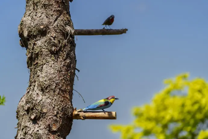 A travers cette œuvre colorée, Wouter Osterholt veut interpeller les randonneurs sur le phénomène du vagabondage, cet événement au cours duquel un animal sort de son trajet de migration habituel. Souvent dû à des tempêtes, la plupart des individus n’y survivront pas. Mais, parfois, le vagabondage aide une espèce menacée à survivre à l’extinction... lorsque les conditions climatologiques autrefois favorables commencent à changer et que de nouveaux habitats doivent être trouvés. Avec le changement climatique rapide, le vagabondage a fortement augmenté. Quelques pionniers solitaires partent à la recherche de nouveaux habitats. Pour inviter le public à prendre conscience du phénomène, l’œuvre présente des reproductions en bois d’oiseaux découverts lors d’observations récentes en Belgique.