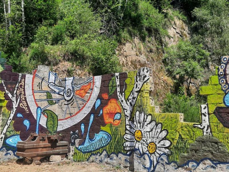 A travers «Symbioses», Thyl Seeger veut interpeller sur la frontière entre l’humain et la nature qui se crée dans nos sociétés. Pour cela, il choisit de travailler dans une échelle sur-dimensionnée et de mettre en exergue une nature reprenant ses droits. Cette fresque s’inscrit également dans le paysage par tout une série de clins-d’oeil à la toile de fond naturelle que compose la végétation, la roche et les bois environnants.